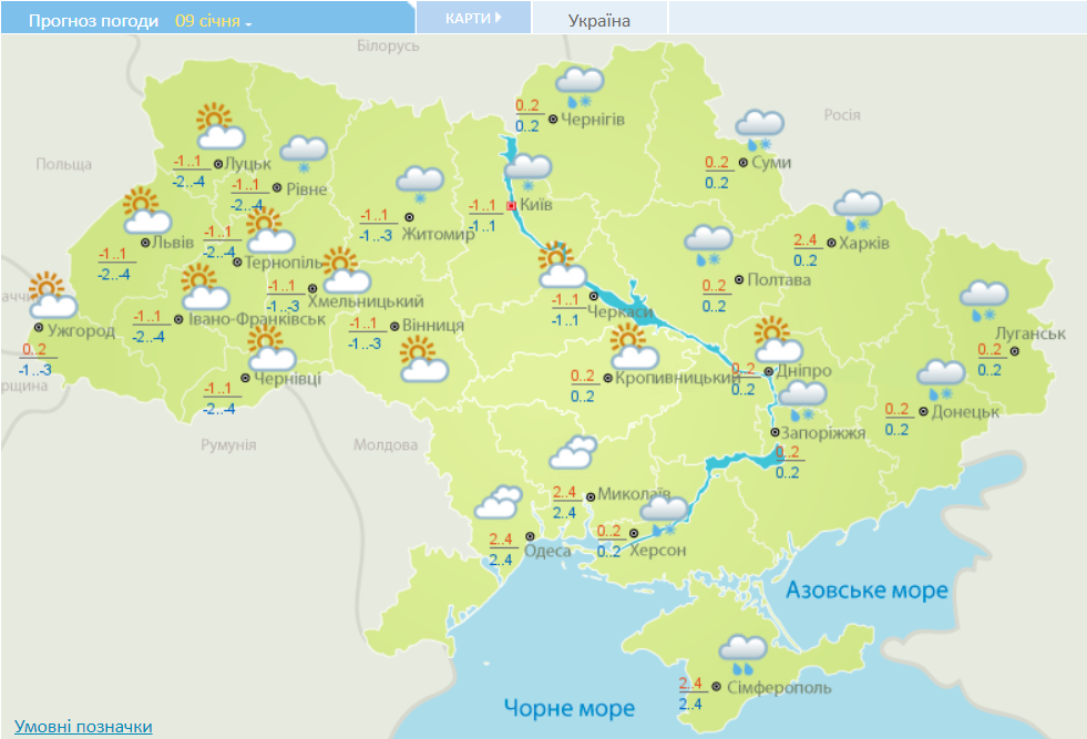 С 9 января похолодание станет существеннее. В частности, снизится ночная температура воздуха во всех областях, кроме Востока, там ожидаются дожди и мокрый снег.