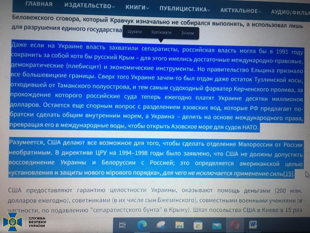 Правоохранители обнаружили литературу, в которой отрицается право Украины на государственность и существование народа, его языка.