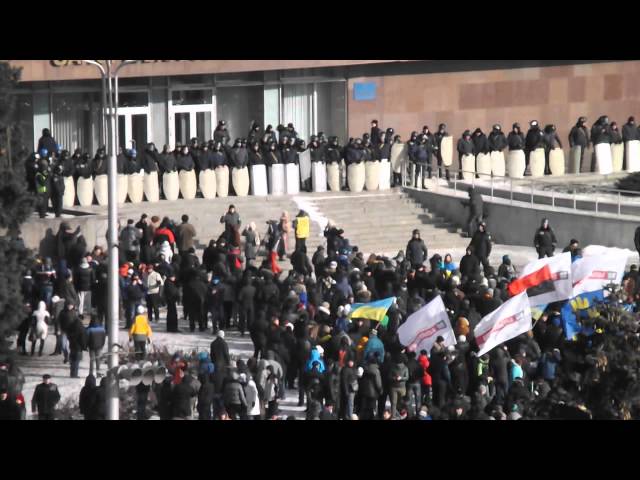 В Запорожье несколько тысяч человек продолжают пикетировать здание областной государственной администрации. Протестующие пытаются прорваться в здание, им препятствует плотное оцепление правоохранителей.