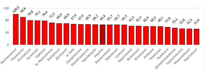 Согласно данным СНБО, наиболее загружены койки в Житомирской (100%), Ровенской (90,6%), Полтавской (79,8%), Луганской (79,1%) и Одесской (78,4%) областях.
