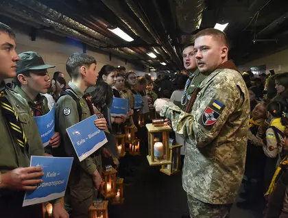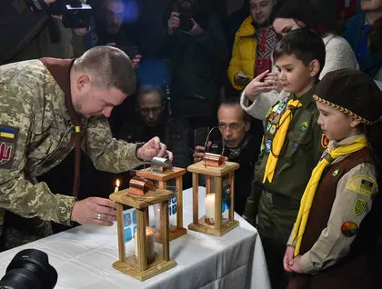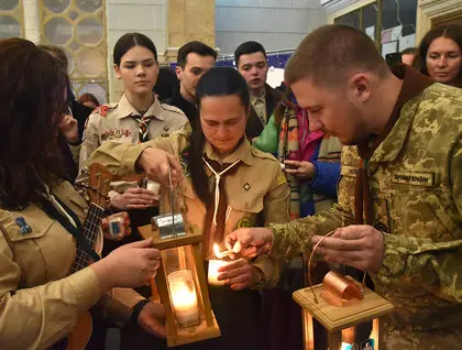 Вифлеемский огонь мира был доставлен в Киев, несмотря на воздушную тревогу и сирены, которые сопровождали церемонию.