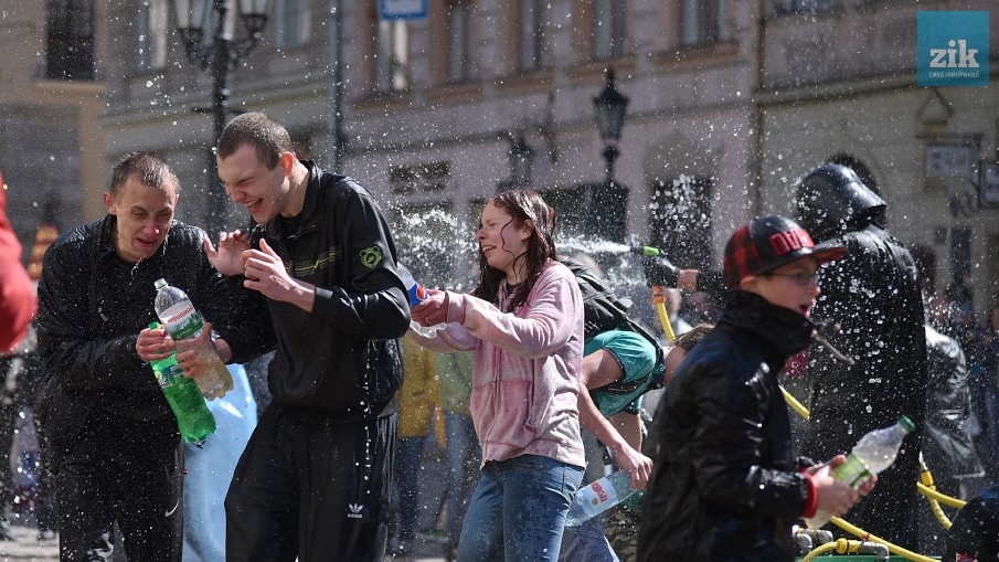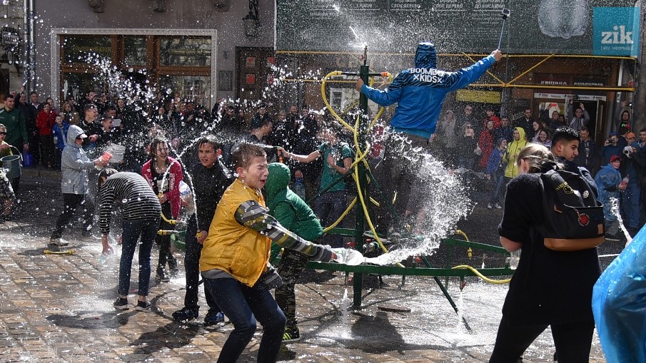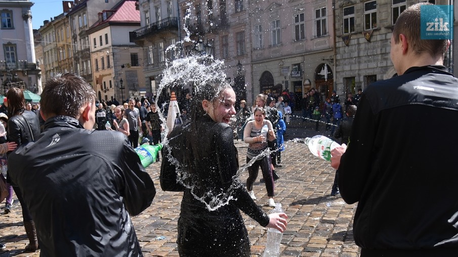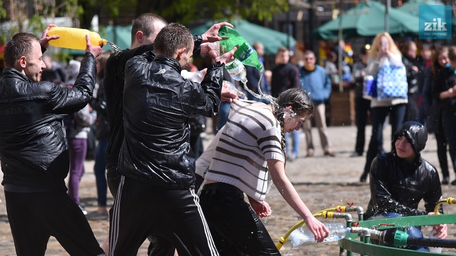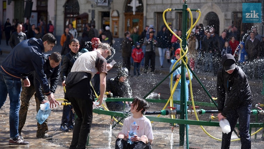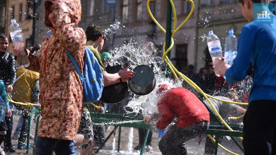 На второй день Пасхи во Львове провели традиционный Поливальный понедельник. Несмотря на весеннюю прохладу, на площади Рынок возле ратуши собралось несколько десятков девушек и парней, готовых к водяной битве. Всем желающим была предоставлена возможность набрать воду в бутылки, а всех скопом поливал фонтан. На пересечении Галицкой улицы и Катедральной площади соорудили "водяные ворота" размером два на три метра. Для облитых были предусмотрены комнаты переодевания и обогрева.