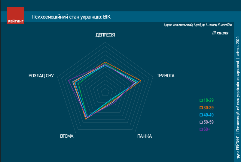 В украинцев во время карантина наблюдается незначительный рост депрессии и падение тревожности. Такие результаты, по сравнению с предыдущими исследованиями (I волна – 27-28.03, II волна – 3-4.04), показал опрос, проведенный Социологической группой "Рейтинг" с 10 по 12 апреля.