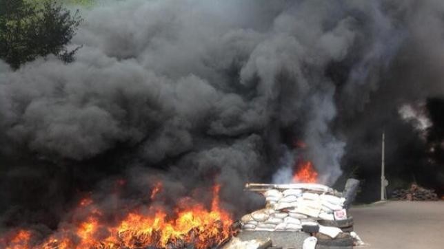 Также в сообщении отмечается, что люди, живущие на окраинах города, сообщают о том, что слышны выстрелы. На блокпосту в районе Комбикормового завода представители "самообороны" жгут шины.