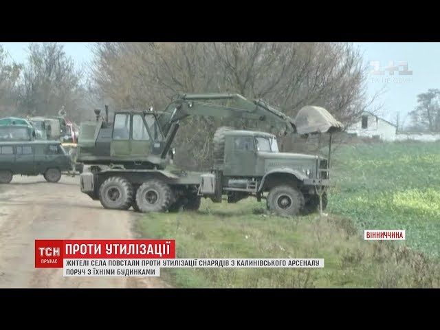 Жители села Лесная Лысиевка Винницкой области перекрыли дорогу военной колонне, протестуя против утилизации боеприпасов Калиновского арсенала вблизи населенного пункта, говорится в выпуске ТСН от 9 ноября.