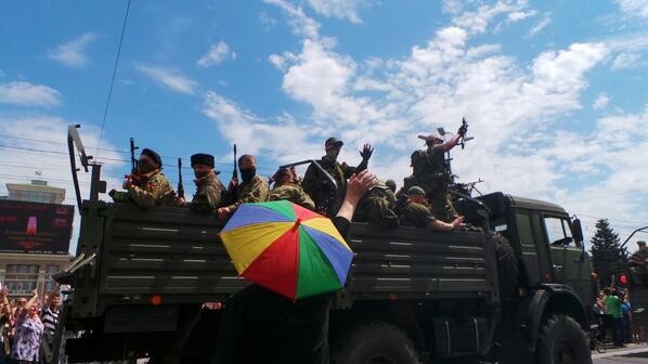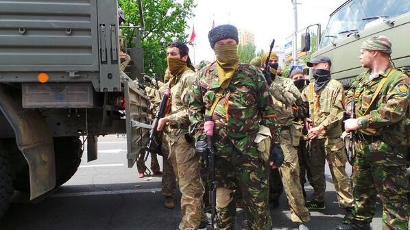 Террористы устроили стрельбу в воздух, после чего покинули центр Донецка.
