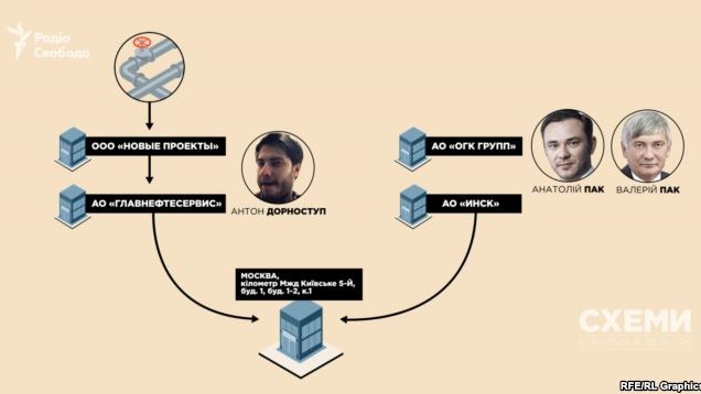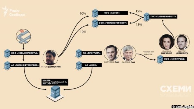 Таким образом, Дорноступ связан не только с семьей Валерия Пака, который работает на семью Медведчука-Марченко, но и непосредственно с фирмой, которой владеет украинская телеведущая Оксана Марченко и руководит ее муж - пророссийский политик из Украины Виктор Медведчук.