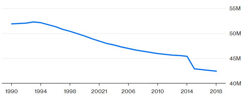 Автор пишет, что официальная статистика обманчиво детализирована. По последним данным, количество населения в декабре 2018 года составляло 42 177 579 человек. По данным Государственной службы статистики Украины, в период между 2014 и 2015 годами произошло резкое сокращение населения, когда Украина потеряла аннексированный Россией Крым и не смогла провести подсчет в восточных регионах страны, контролируемых российскими "доверенными лицами". Но в последние годы не было резкого сокращения населения.