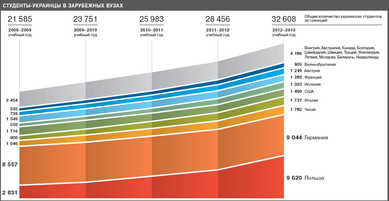 За последние пять лет количество украинских студентов, выехавших за границу на учебу, выросло на треть – с 21,5 тыс. до 32,6 тыс. человек.