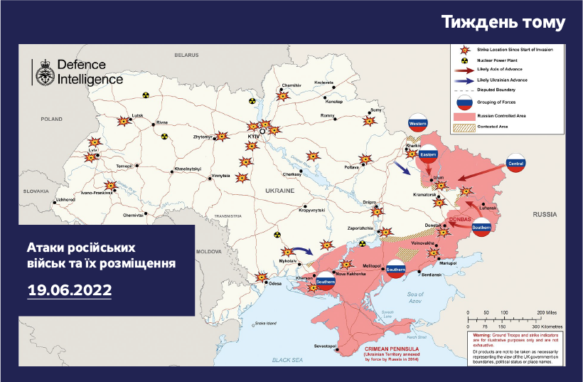 Министерство обороны Британии опубликовало актуальную карту боевых действий в Украине по состоянию на воскресенье, 26 июня.