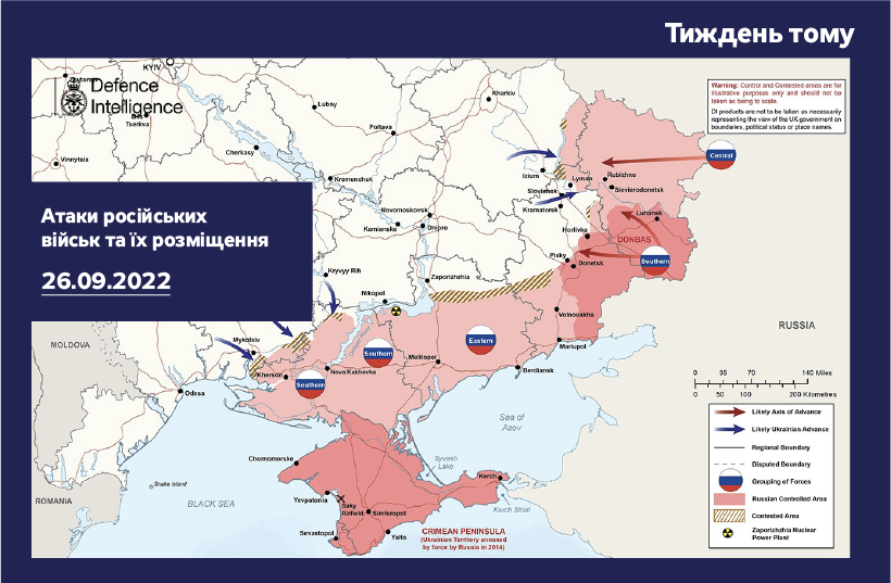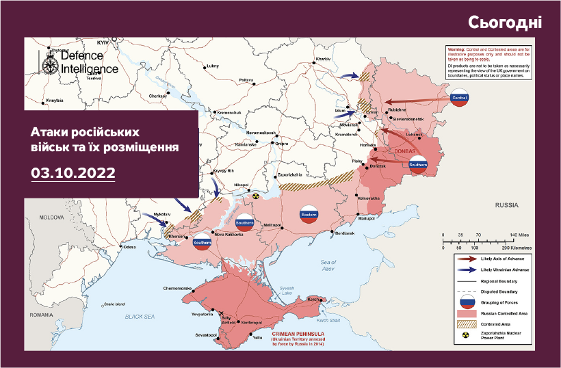 Министерство обороны Британии опубликовало актуальную карту боевых действий в Украине по состоянию на понедельник, 3 октября.