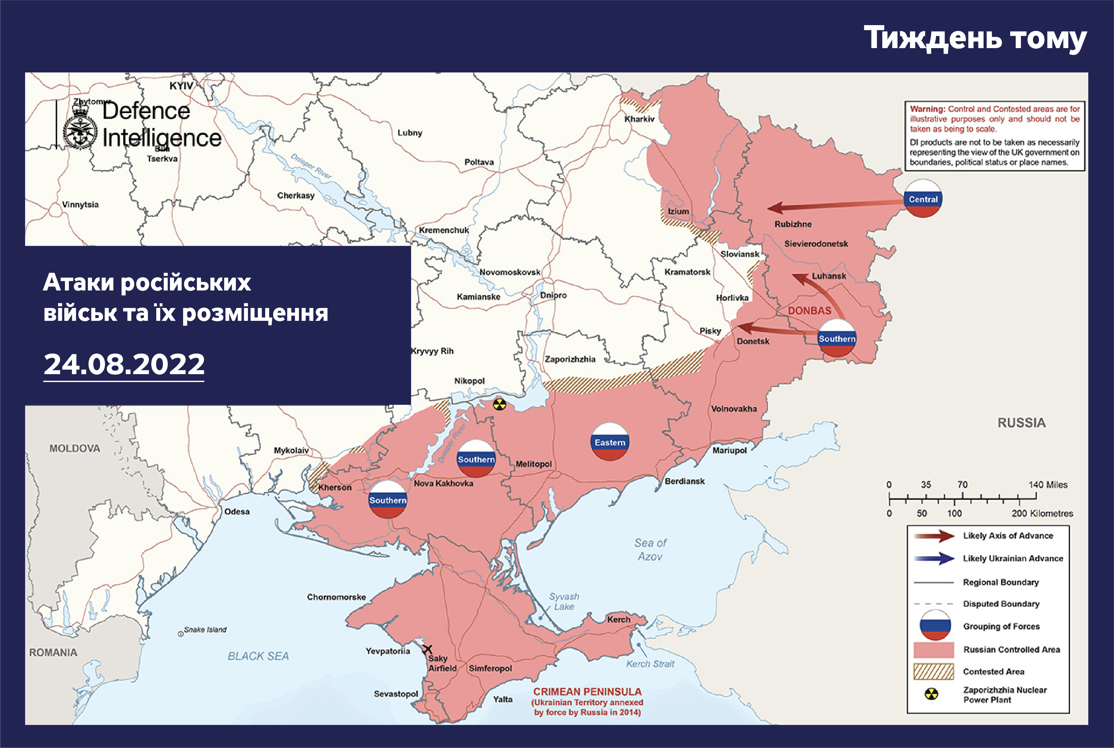 Министерство обороны Британии опубликовало актуальную карту боевых действий в Украин по состоянию на среду, 31 августа.