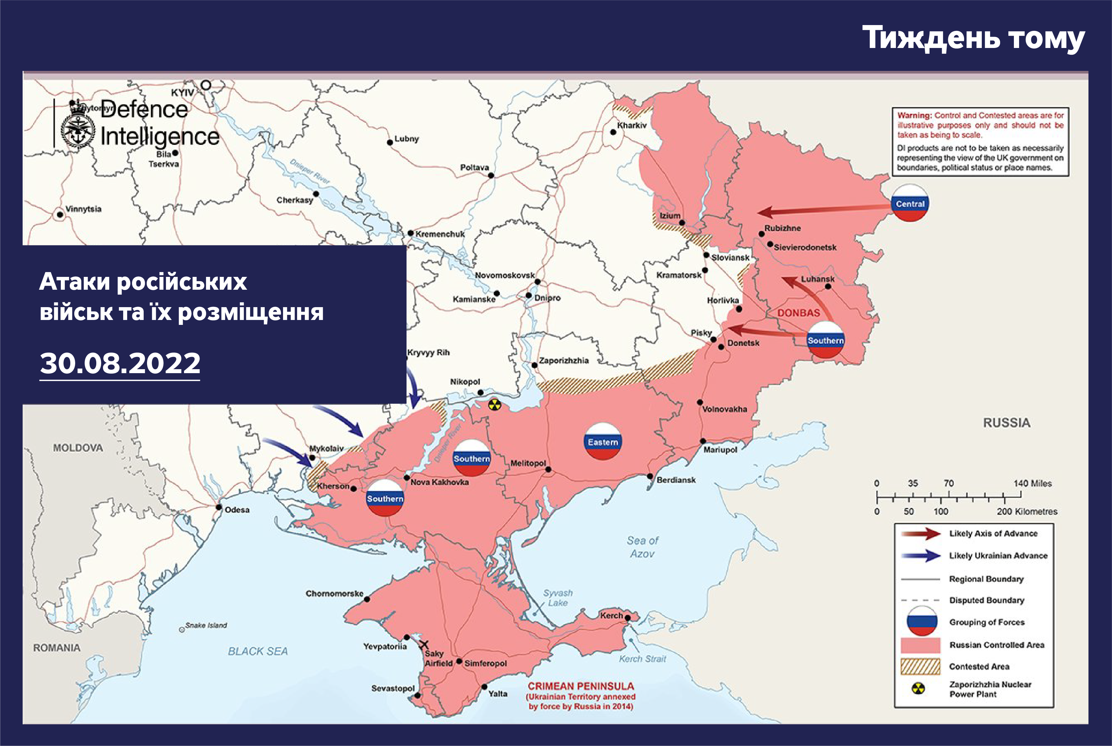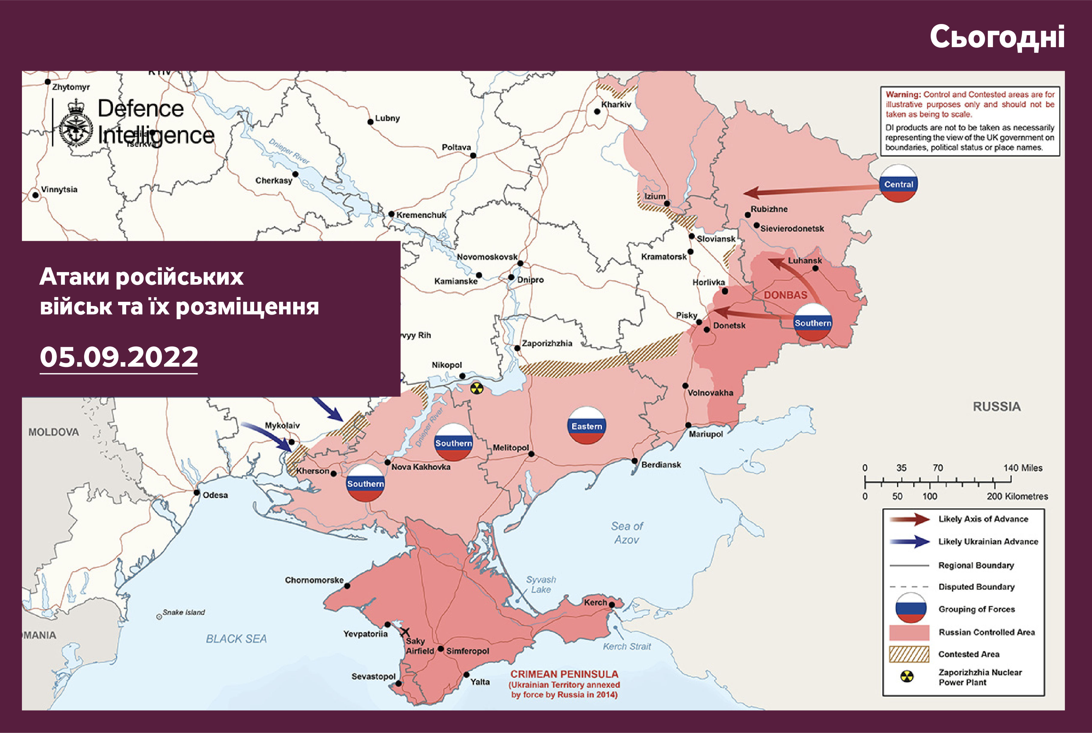 Украинские войска продвигаются по нескольким направлениям в западной части Херсонской области и закрепили территорию за рекой Северский Донец в Донецкой области. Скорость контрнаступления, вероятно, будет резко меняться с каждым днем, поскольку ВСУ постараются лишить россиян необходимых поставок, даже если наземные контрнаступления будут продолжаться.