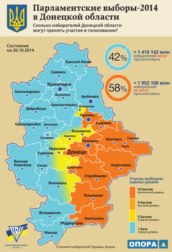 11:03 - Сводка от местных властей: в Донецкой области открылись 1047 избирательных участков, 4% из запланированных участков не работают. В Мариуполе открылись все избирательные участки, проголосовало 3% избирателей