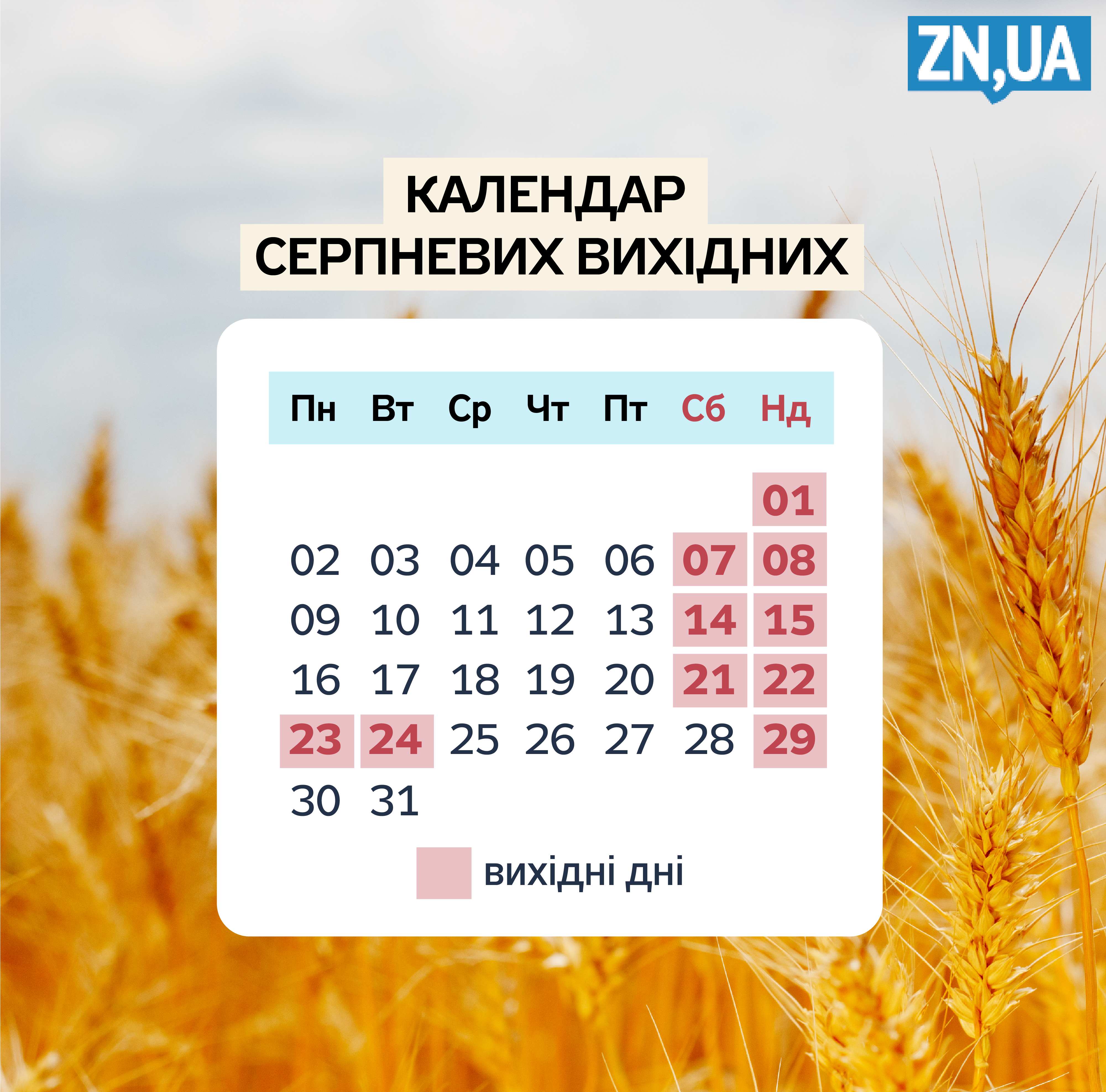 Кроме четырехдневного уикенда, у украинцы будет еще шесть выходных: 1, 7, 8, 14, 15 и 29 августа.