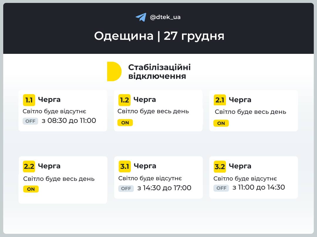 Кроме того, для некоторых областей и столицы графики на своем канале в Telegam публикует ДТЭК.