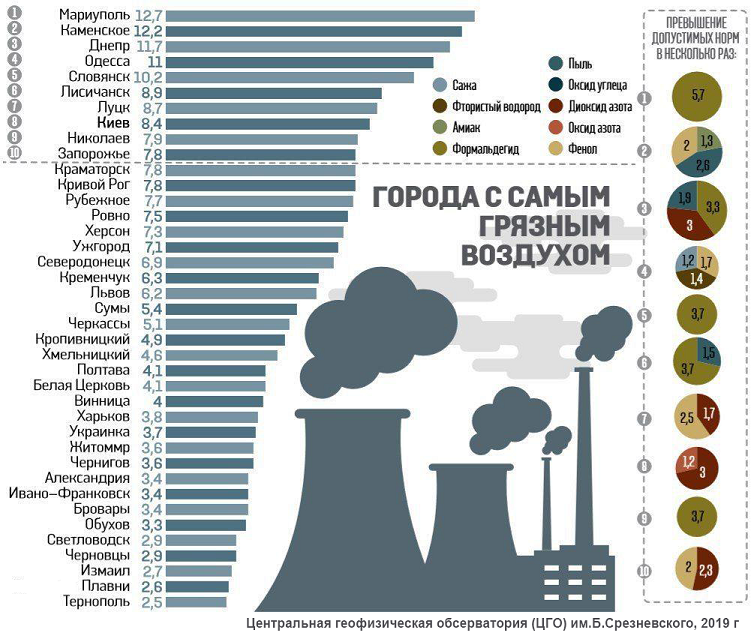 По словам начальника отдела гидробиологи и гидрохимии Украинского научного центра экологи моря Александра Гончарова, Одесса оказалась в ТОП-5 городов Украины с самым загрязненным воздухом, оставив позади крупные промышленные центры - Лисичанск, Запорожье, Киев, Краматорск, Кривой Рог и др. Исследование проводила Центральная геофизическая обсерватория им.Б.Срезневского. Анализ проводился в 2019 г. в 39 городах Украины с определением в воздухе 22-х загрязняющих веществ, 8 из которых - тяжелые металлы.