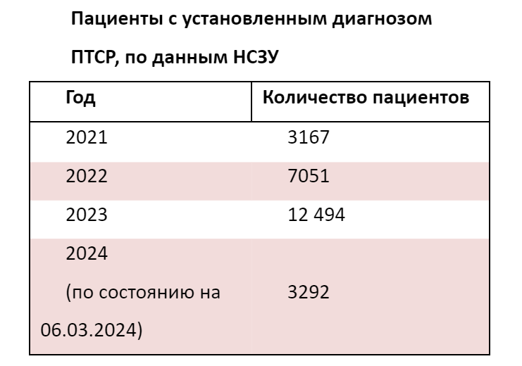 Он приводит данные, что за прошлый год количество пациентов с ПТСР выросло почти в четыре раза по сравнению с 2021 годом, а за первые два месяца текущего года такой диагноз врачи установили аналогичному количеству пациентов, как за весь 2021 год.