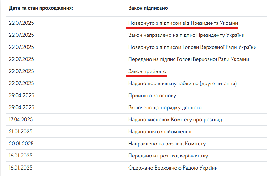 Президент Владимир Зеленский подписал законопроект №12414, которым фактически ликвидируется независимость САП и, соответственно, НАБУ. Согласно странице на сайте парламента, документ уже вернули в ВРУ с подписью главы государства.