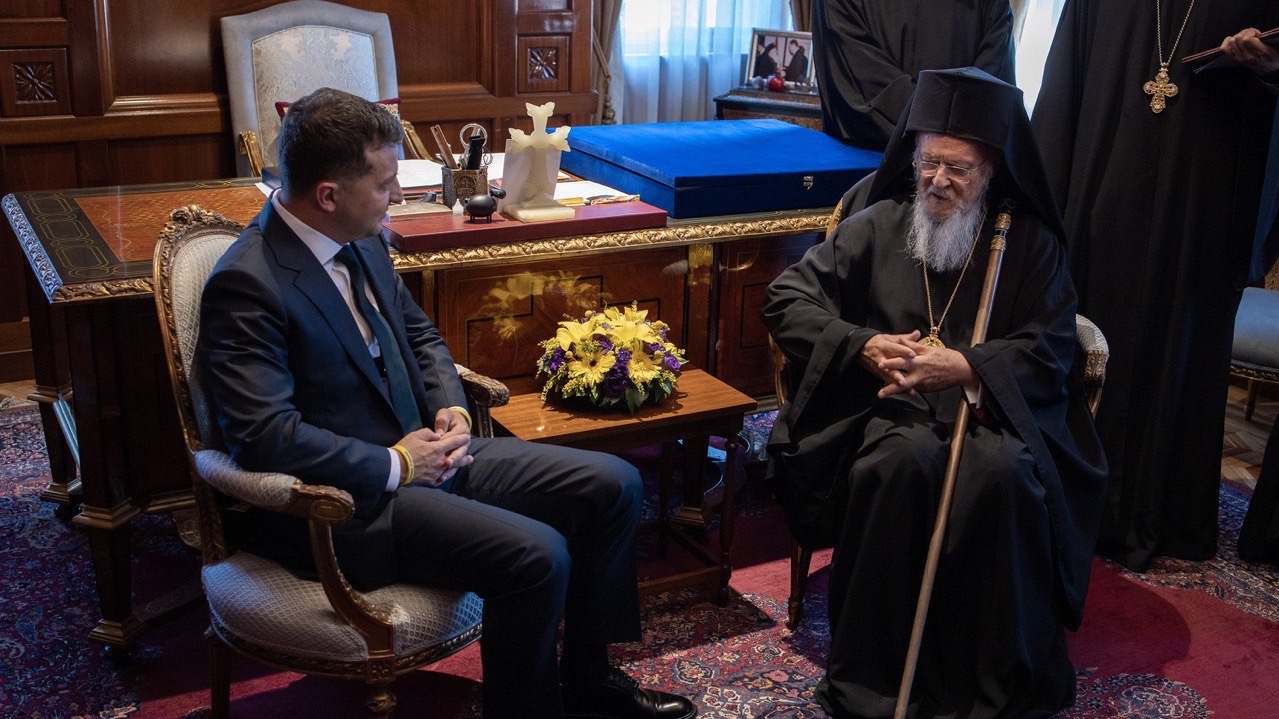 Тем временем Офис Зеленского заявил, что на встрече президент поблагодарил Варфоломея за поддержку Украины и сказал о том, что власть не должна вмешиваться в церковные дела и он будет защищать независимость церкви.