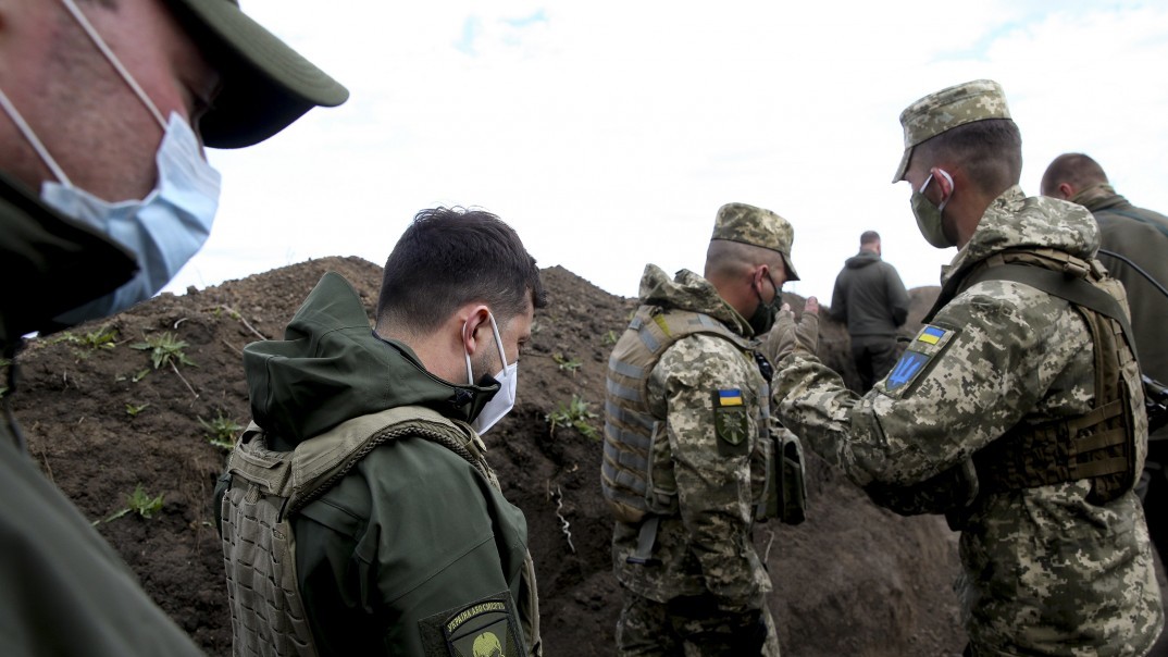 Президент Украины Владимир Зеленский посетил участок разведения сил в районе Петровского в Донбассе во время своей рабочей поездки в зоне ООС. В частности, он побывал на участке разведения сил и средств сторон № 3 "Петровское", сообщает пресс-cлужба Офиса президента Украины.