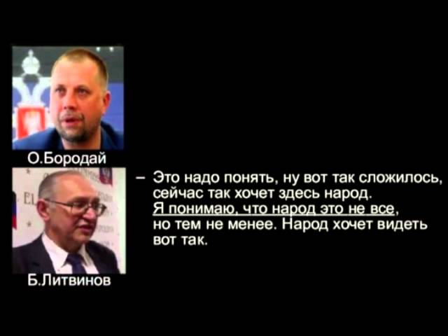 "Я понимаю, что народ – это не все, но народ хочет видеть (отдельную "партию" Литвинова на "выборах" – ред)." - оправдывается последний. На это Бородай ему отвечает, что "ссылка на желание народа не имеет никакого значения", отметая всякие возражения о "социальном напряжении".