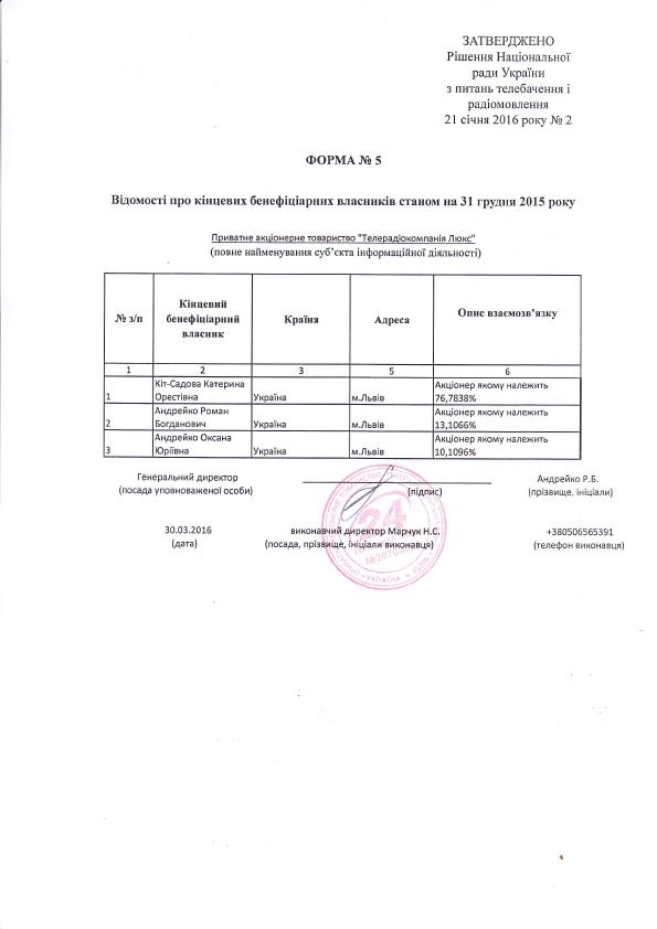Согласно документам, опубликованным на сайте телеканала, Кит-Садовая владеет 76,7% акций телеканала, а также является членом наблюдательного совета.