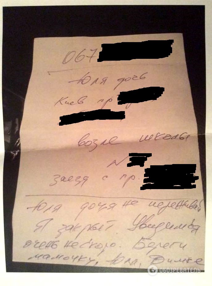 "Эта записка была написана в присутствии сотрудников полиции, о том, что он признает свою вину, о том, что он кается, о том, что он приносит извинения перед своей семьей. Эта записка была передана жене", - отмечал замглавы Нацполиции.