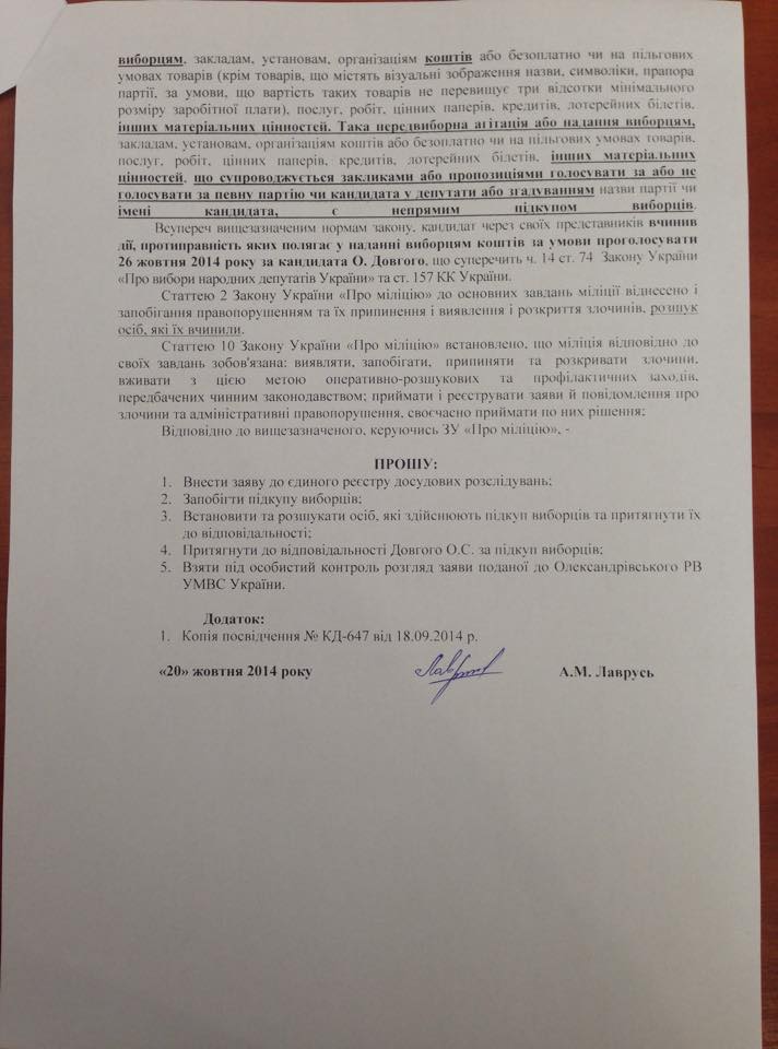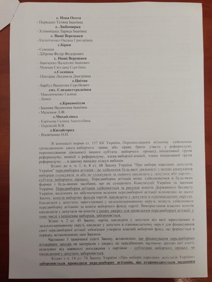 По словам Найема, соответствующее заявление было передано главе УМВД в Кировоградской области Анатолию Витюку. Последний рассказал, что всего по области расследуется 42 уголовных производства по избирательному законодательству, из которых 22 - именно по 102 округу.
