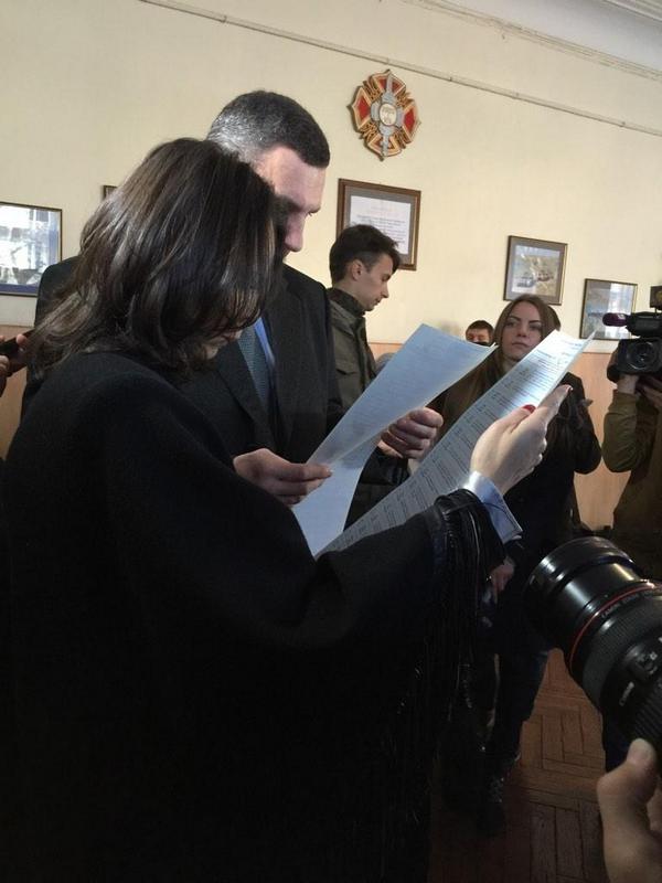 На избирательный участок вместе с женой пришел лидер партии "УДАР" Виталий Кличко, чтобы проголосовать за новый украински парламент.