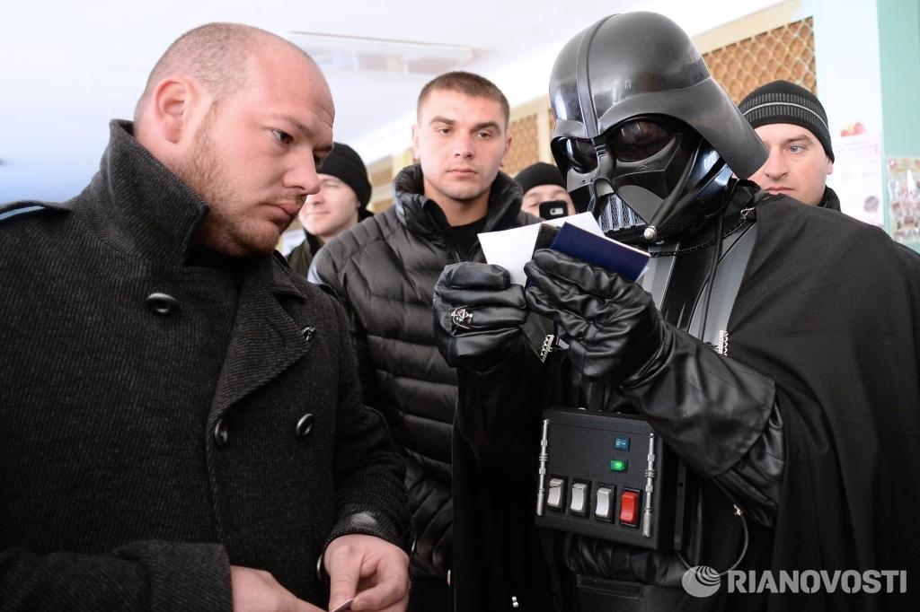 Уже успел отдать свой голос кандидат в депутаты от Интернет-партии Дарт Вейдер.