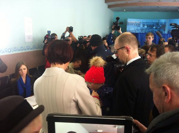 Пришел проголосовать вместе со своей женой на внеочередных выборах премьер-министр Украины Ярсений Яценюк.