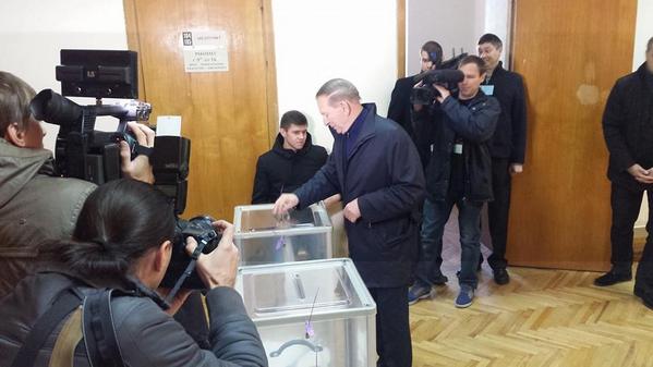 Экс-глава МВД, а ныне советник президента Юрий Луценко также проголосовал сегодня на избирательном участке.