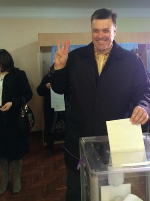 Вместе с семьей в Киеве на избирательном участке №800116 проголосовал лидер ВО "Свобода" Олег Тягнибок.