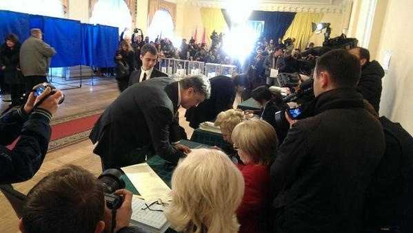 Глава государства Петр Порошенко около 14.30 проголосовал за новую Верховную Раду. Голосовал президент по месту регистрации – на избирательном участке в Киеве, в Доме офицеров.