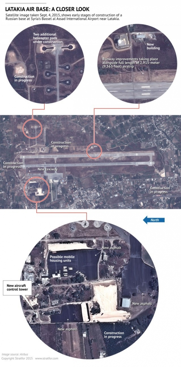 Разведывательно-аналитическая компания США Stratfor опубликовала снимки со спутника, которые являются доказательством того, что российские военные строят в сирийском аэропорту Латакия авиабазу, сообщает РБК.