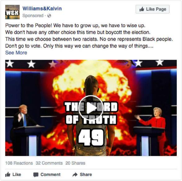 Члени Комитета по разведке Палаты представителей США от Демократической партии опубликовали копии проплаченных "фабрикой троллей" постов в Facebook, которые публиковались с целью повлиять на американские президентские выборы в 2016 году. Как говорится на сайте комитета, всего было приобретено более 3,5 тысяч сообщений, которые увидело 11,4 миллионов американцев.