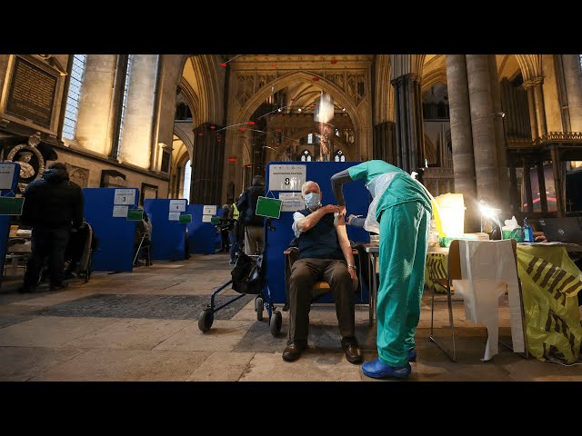 Пациенты получают вакцину в соборе в Солсбери с 16 января, в нем проводятся сеансы инъекций дважды в неделю для 1200 человек в день. Сессии продолжаются около 12 часов, и большую часть этого времени Дэвид Холлз и Джон Челленджер, органисты собора, обеспечивают музыкальную поддержку, начиная от известных гимнов и заканчивая мелодиями ярмарки и классических эйфорических произведений.
