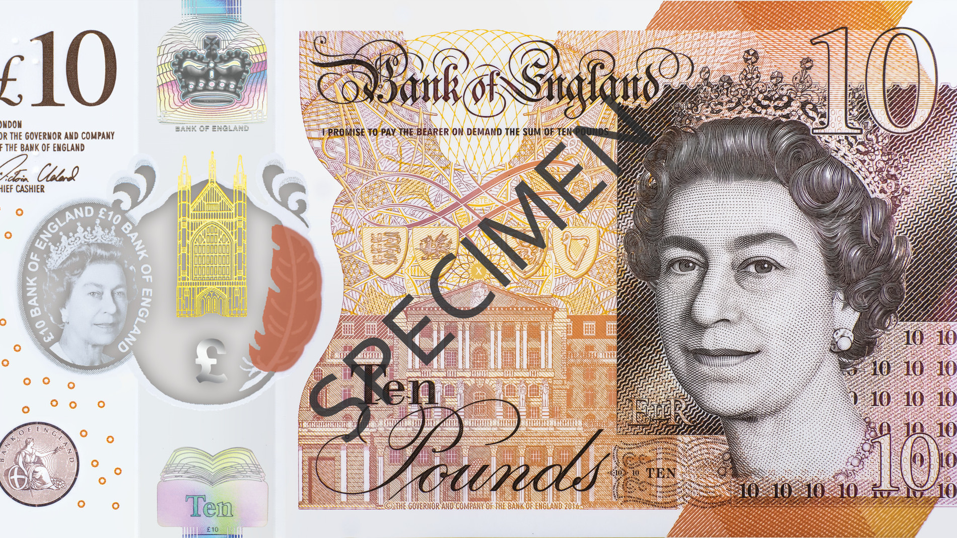 Купюру сделали из прочного полимерного материала, который прослужит вдвое дольше прежнего. Также новая десятифунтовка имеет улучшенную систему защиты. В обращение купюра поступит осенью и заменит старый образец, на котором изображен биолог Чарльз Дарвин.