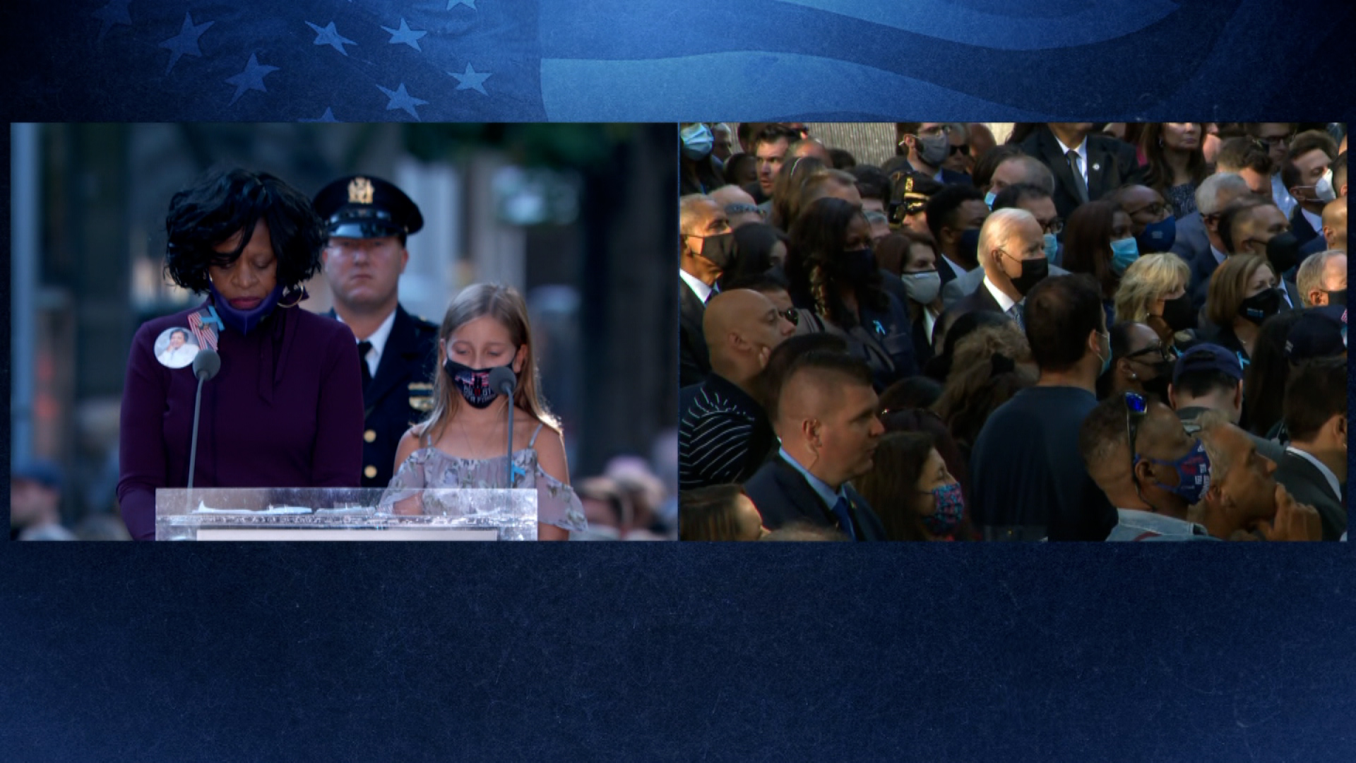 В заявленной повестке говорится, что президент США Джо Байден со своей супругой будут присутствовать на каждом месте, где в результате терактов погибли люди. В Манхэттене к ним присоединились, у мемориала жертвам теракта, экс-президенты Барак Обама и Билл Клинтон. Дональд Трамп на церемонии не присутствует.
