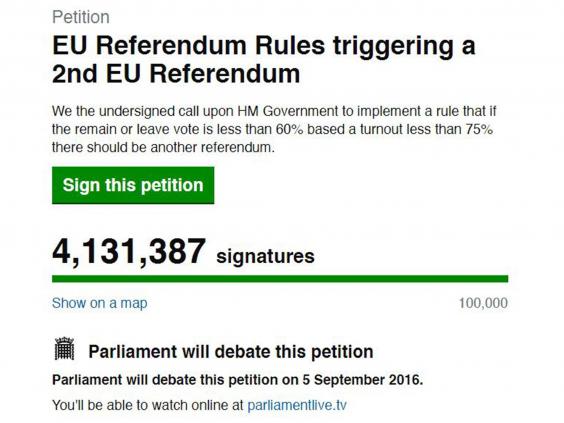 Решение было принято в связи с тем, что под петицией о новом референдуме по Brexit подписались более 4 млн британцев. При этом сама петиция была создана еще до референдума и предлагает проведение нового голосования, если выход из ЕС поддержит менее 60%.