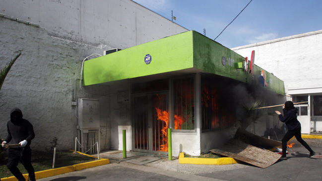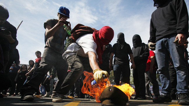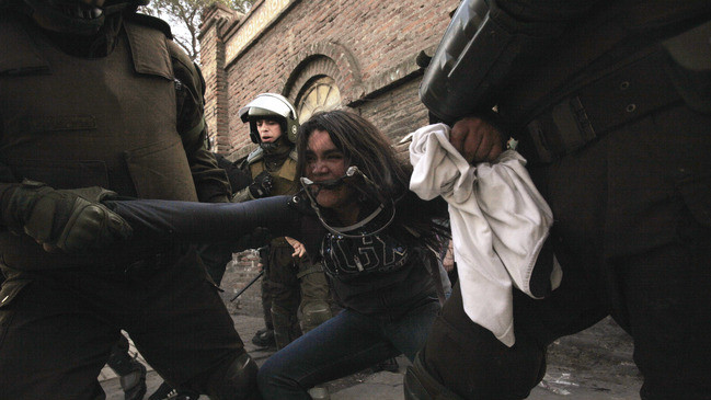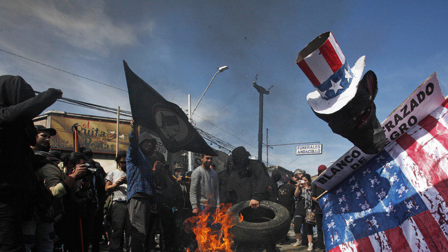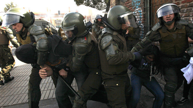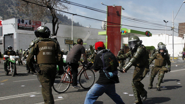 Полиция утверждает, что арестовала десятки людей, которые строили баррикады и бросали в полицейских камни и коктейли Молотова. В столице страны - Сантьяго - подожгли автобус. В городе размещено 8000 полицейских для контроля за порядком в годовщину военного переворота.