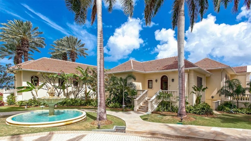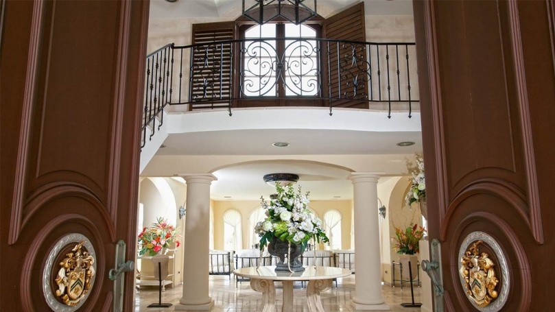 На карибском острове Сен-Мартен продается вилла Le Château des Palmiers, принадлежащая президенту США Дональду Трампу. Имение занимает два гектара атлантического побережья. Основной дом включает в себя 11 спален, несколько ванных комнат, кухню, столовую, гостиную и спортзал. В интерьере преобладают дорогие материалы: шелк, мрамор, хрусталь, ценные породы дерева и даже золото. Также есть гостевой дом и бассейн, пишет Business Insider.