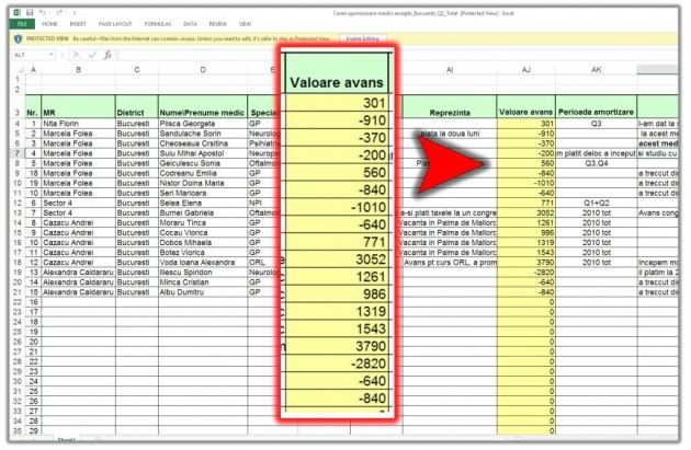В таблицах, кроме данных врачей, также фигурируют медицинские представители и менеджеры по продажам. Компания распределяла медиков на несколько категорий в зависимости от их потенциала и лояльности к компании.
