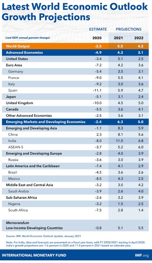 Оптимистичный прогноз базируется на тезисе, что экономическая активность будет увеличиваться благодаря вакцинам и дополнительным программам стимулирования в отдельных крупных странах.