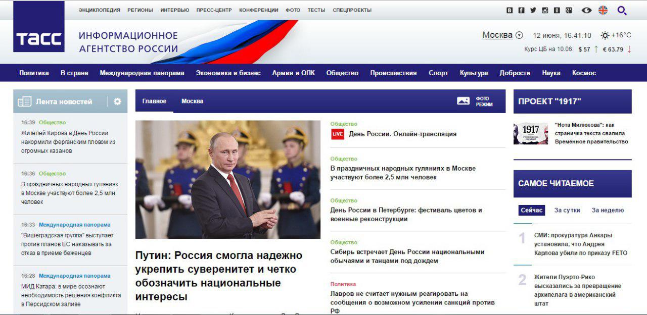 В частности днем 12 июня информационное агентство ТАСС уделяло основное внимание не протестам, а официальным праздничным мероприятиям по случаю дня России. Новостей о митинге на главной странице сайта агентства не было.
