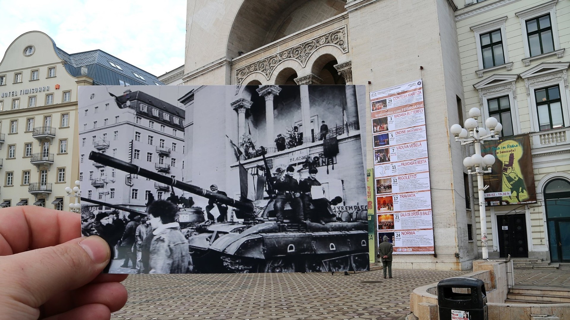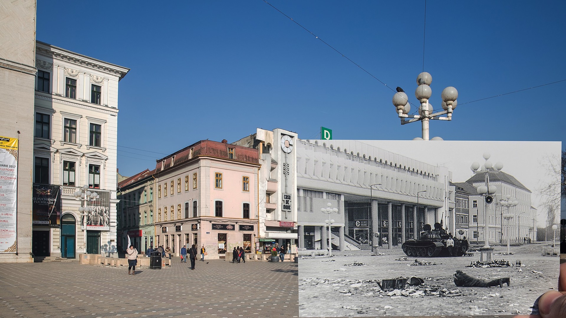Накануне годовщины революции Дани Амарией, местный фотограф, реализовал проект "Тимишоара - 30 лет свободы. Он соединил снимки декабря 1989 с сегодняшними фотографиями города и выложил коллажи на Фейсбук. "Через 30 лет после того, как в Тимишоаре вспыхнула революция, я хочу поблагодарить тех, кто принес жертву за свободу", - написал Дани.