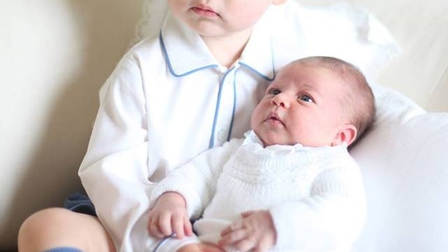 На этих фотографиях маленькая принцесса Шарлотта, дочь герцога и герцогини Кембриджских Уильяма и Кейт, пятая правнучка британской королевы Елизаветы II, изображена вместе со своим старшим братом – принцем Джорджем, которому сейчас почти 2 года.
