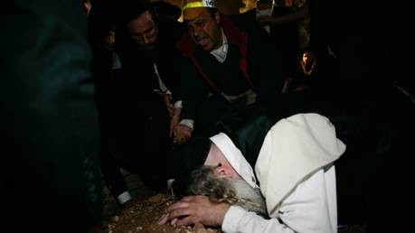 Некоторые из присутствовавших в знак горя и скорби рвали на себе одежду и наносили себе телесные увечья, многие из них были в крови. Около могилы за несколько часов до похорон уже находились десятки студентов йешив и детей. У многих из юных израильтян были с собой записки, которые они намеревались бросить в могилу во время похорон в надежде, что их пожелания исполнятся.