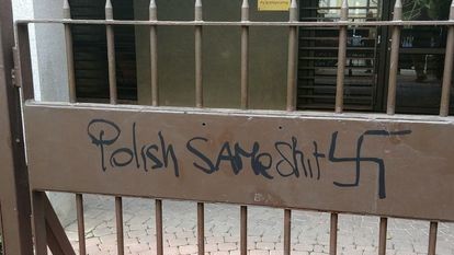 Вандалы, а именно по такой статье израильская полиция возбудила уголовное дело, оставили неприличные надписи, а также надписи "убийцы" и "польское дерьмо" на доске объявлений и на воротах консульства.